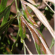 Leaf Scorch (Verrucispora proteacearum) is a fungal disease that infects leaves causing large parts of the leaf to turn grey-brown, giving the appearance that it has been singed by fire. Black fruiting bodies appear on the affected areas and the leaf soon withers then dies. New, mature leaves are affected during very wet periods towards the end of the branches and Grevillea and Hakea species are susceptible.