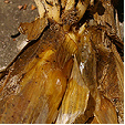 This naturally occurring fungus grows between the bark and wood of trees producing distinctive cream sheets of hyphae. The toadstool-like fruiting bodies are yellowish brown and appear from the soil or sprout out of the base of the host plant.