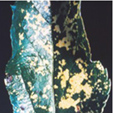Orchids such as Cattleya, Cymbidium, Cypripedium, Dendrobium, Epidendrum, Oncidium, Paphiopedilum, Phalaenopsis and Zygopetalum species are infected by Cymbidium Mosaic Virus and Tobacco Mosaic. Cattleya and other orchid species exhibit leaf necrosis in the form of rings or streaks and necrotic sunken areas that are brown or black on the mature leaves.