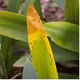 Hemerocallis and Clivia species may be infected Leaf Scorch causing the tips of the leaves to brown off and die.