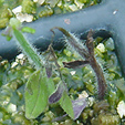 The small dehiscent capsule is winged and splits lengthwise to release the very fine powder-like seeds. The seeds are viable but the plant is usually reproduced vegetatively in order to maintain true to type.
