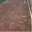 Turf Grass such as Agrostis palustris (Bent), Festuca arundinacea (Fescue) and Cynodon species (Couch) are infected by Brown Patch (Rhizoctonia solani). This fungus forms brown discoloured areas that turn white-grey up to 50cm across with a brown smoky coloured border. It is found in particularly heavy thatched turf in warm humid conditions. Excessive nitrogen and poorly drained soils favour infection and can be seen in the early morning when the dew is on the turf. It is active from spring to summer and may be associated with other fungal attacks.