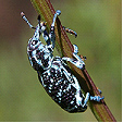 Carya species are attacked by the Painted Hickory Borer (Megacyllene caryae). The adult dark brown beetle has obvious zig zag lines on its wing covers and the lava is cream coloured, both up to 20mm long. The lava tunnels the sapwood of living trees causing ring barking and also tunnels dead trees.