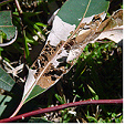 Aesculus species are infected by the powdery mildew (Uncinula flexuosa) which forms a white mold on the underside of the leaves.